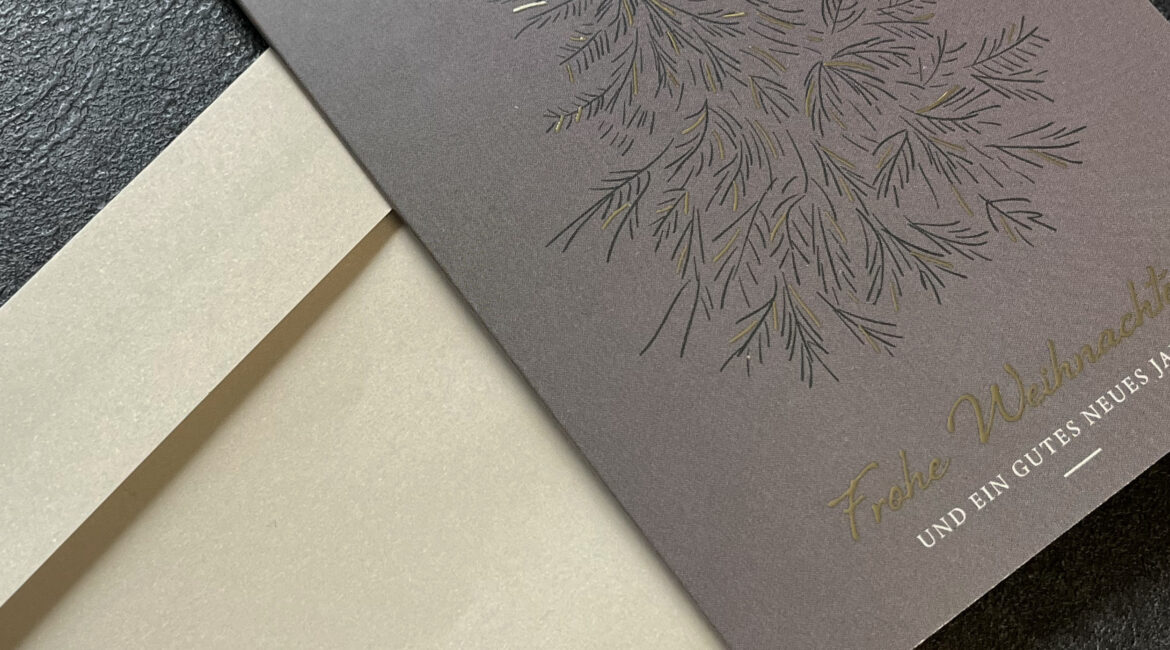 Für die Stadt Leuna durften wir stimmungsvolle Weihnachtskarten samt passender Umschläge gestalten. Die Kombination aus klassischem Design und hochwertiger Haptik sorgt für festliche Eleganz mit Stil. Das goldene Finish verleiht den Karten nicht nur einen feierlichen Touch, sondern lässt sie auch optisch richtig strahlen. Ideal, um Wertschätzung zur Weihnachtszeit charmant zu übermitteln.